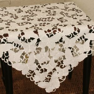 Description Embroidered butterflies flutter on this all cutwork linens collection. Classic and elegant in all white, this collection is a beautiful accent to your spring table settings. Product Details Hand Rendered Cutwork with Intricate white Butterflies Embroidery Material: Made with 100% wrinkle and stain resistant easy care poliviscose. Matching Traycloth,Table Runner and Table Topper available....